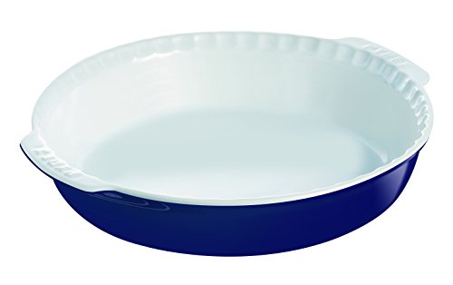 Pyrex Impressions Round Pie Dish with Handles is original in design, this versatile ceramic collection is the ideal solution for stylish oven to table serving. It is made of 100% natural stoneware, the vintage-styled Impressions range is oven proof up to 250 degrees C and available in heritage colour tones of blue to co-ordinate with any kitchen or table style. It measures 26 cm width by 4.7 cm depth. This cooking utensil is guaranteed for 2 years against all manufacturing defects. Read more details..