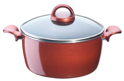 Product type: stewing potElegant productMaterial: aluminium.Type of heat source: all heat sources except inductionInside: non-stick Intensium coatingOutside: cherry red enamelElegant and comfortable handlesGlass lid with steam valve for additional control when cooking and for steam evacuation.'Resistal' base with metal expansion canals to prevent deformation