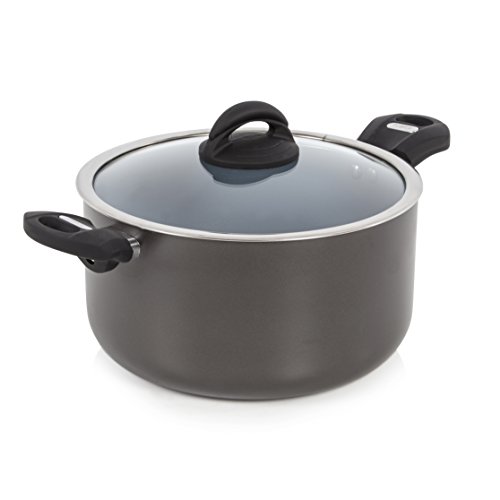 Coated with cerasure a revolutionary non-stick ceramic coatingAluminium body with stylish French grey finishStay cool ergonomic phenolic handlesTempered glass lid for extra durabilitySteam vent allows for efficient cooking