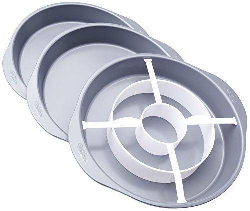 <p><p>Serve up a surprise on a cake slice with Wilton's clever pan set, which makes it easy to create incredible chequered cakes. Whether you're celebrating a birthday with favourite flavours, a sporting triumph with bright primary colours or a special occasion that calls for subtle sophistication, the combinations are countless, letting you layer up a truly bespoke bake.</p><p>For a simple two-tone pattern, split your mix, colour and flavour as desired, place the dividing ring in the first pan and fill the inner and outer rings with one colour and the middle ring with the other. Remove the ring using the easy-lift handles, repeat with the second pan then reverse the colour order for the third. For three colours or flavours, just alternate the placement of the mix in each layer. Stack, decorate, serve... then pick up your cake knife and prepare for the big reveal!</p><p><p>Comprises 3 non-stick coated pans, dividing ring and full instructions. Each pan 23cm Dia. x 3cm H.</p></p></p> Read more details..