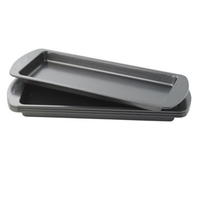 <p><p>Following the success of the round Easy Layer Cake Pan Set, we thought you'd like to try this oblong version. You can still bake all your sponges at once to make a multi-layered cake, but how you arrange those layers is limited only by your imagination. You can keep it simple, of course, and just make an oblong cake that's easy to portion or you could be a bit more ambitious. Make a fun 'brick' cake, a layered take on the traditional Yuletide log or something more sculptural; use for mini Swiss rolls or an alternative battenburg, even millefeuille or an ice cream layer cake. Non-stick coated for easy release and cleaning. Recipe incl. </p><p>Set of 4 pans. Each pan 25.5 x 10.5 x 2cm H.</p></p> Read more details..
